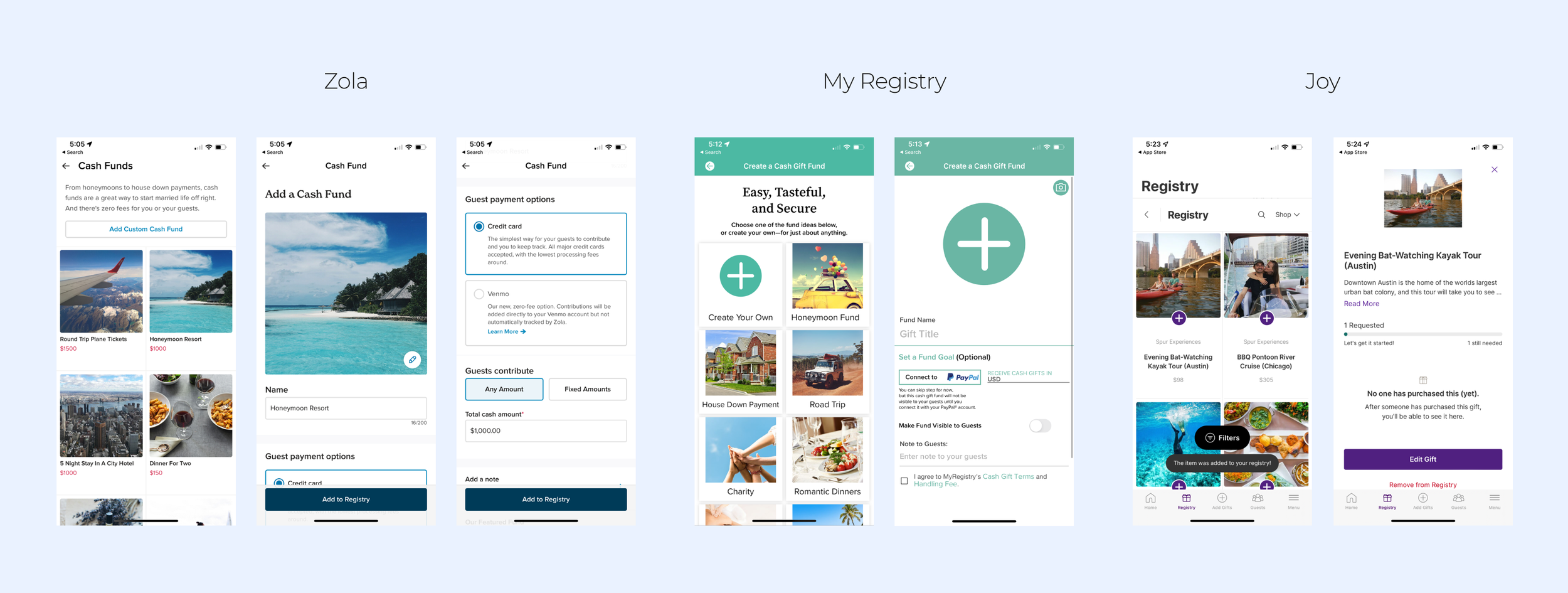 I looked at a bunch of competitors such as Zola, My registry, Joy, and the Knot.