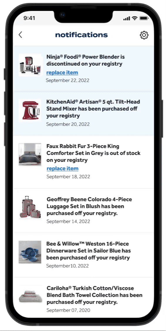 “I love when I get registry notifications, so I know right away when items go out of stock or are discontinued. I can quickly take action and replace the item, so my guest are less frustrated.”