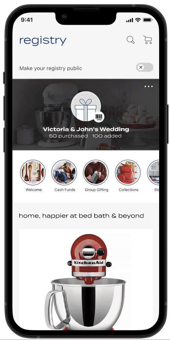 5. View new products in the feed to help registrants get started and build their registry. Discover new products daily. Once a registrant Interacts with the feed there will be personalized product recs based on your interest.